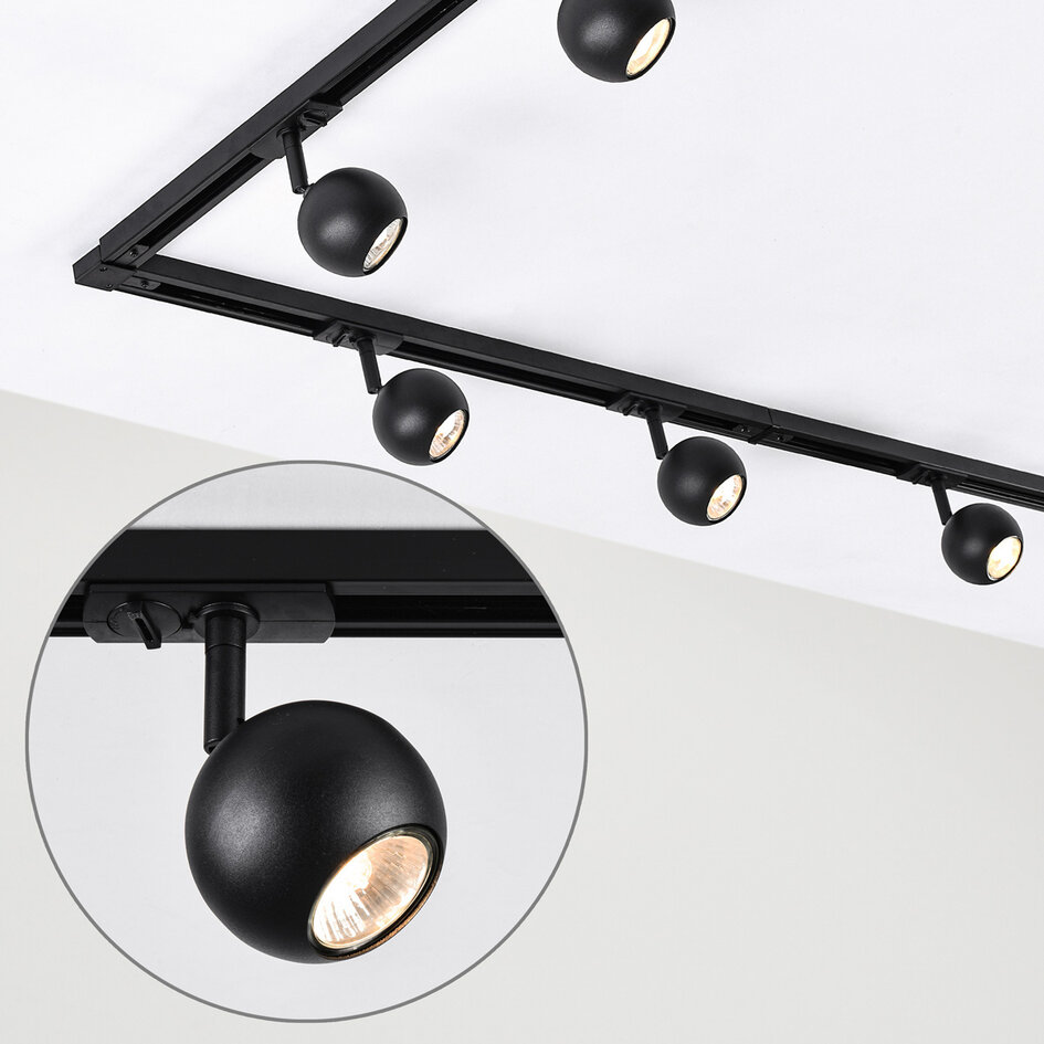 I pakken finder du 4 aluminiumsskinner á 75 cm med en mat, sort belægning. 1 af skinnerne er inkl. tilslutningsblok. Skinnerne kommer med 3 x I-koblingsstykker, 1 x L-koblingsstykke, skruer samt tilhørende endestykker. Du kan selv vælge, hvor mange spotlamper du ønsker, der skal være på skinnen.