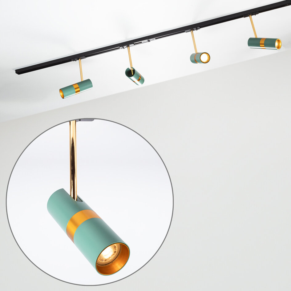 Vores skinnespots fra serien Remi skaber et unikt udtryk i rummet. De gyldne detaljer giver det turkise spotlight et sofistikeret touch, og sammen skaber de et friskt pust i dit interiør. Vores modulære lysskinnesystemer giver dig fuld frihed, da spottene nemt kan klikkes på og flyttes rundt langs skinnerne.