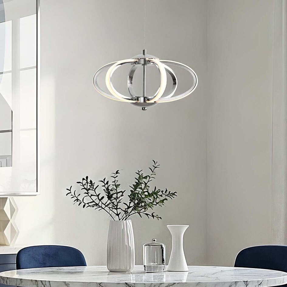 Er du på jagt efter en pendellampe med et stærkt design, der ikke ligner alle andre lamper? Så er LED-pendlen Yinthe måske noget for dig. Den smukke lampe er et sandt blikfang på grund af de flydende former og det skulpturelle udtryk. Yinthe er produceret med en blank, kromfarvet overfalde, som giver en legende lyseffekt og reflekterer lyset fra de integrerede LED-paneler. Du kan nemt dæmpe lyset i tre niveauer på grund af den indbyggede funktion 3-trinsdæmpning.