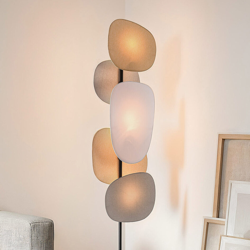 Velore er en moderne gulvlampe med et let og organisk design. Lampen består af flere paneler i bløde, neutrale nuancer, der tilsammen danner et legesygt og luftigt helhedsbillede. Takket være den åbne ramme og de organiske former spreder Velore et subtilt lysspil og tilføjer karakter til ethvert interiør – fra stuen til soveværelset eller arbejdspladsen. Med 3 x E14-fatning (lyskilde medfølger ikke) er denne lampe designet til elskere af moderne belysning, hvor design og funktionalitet går op i en højere enhed.