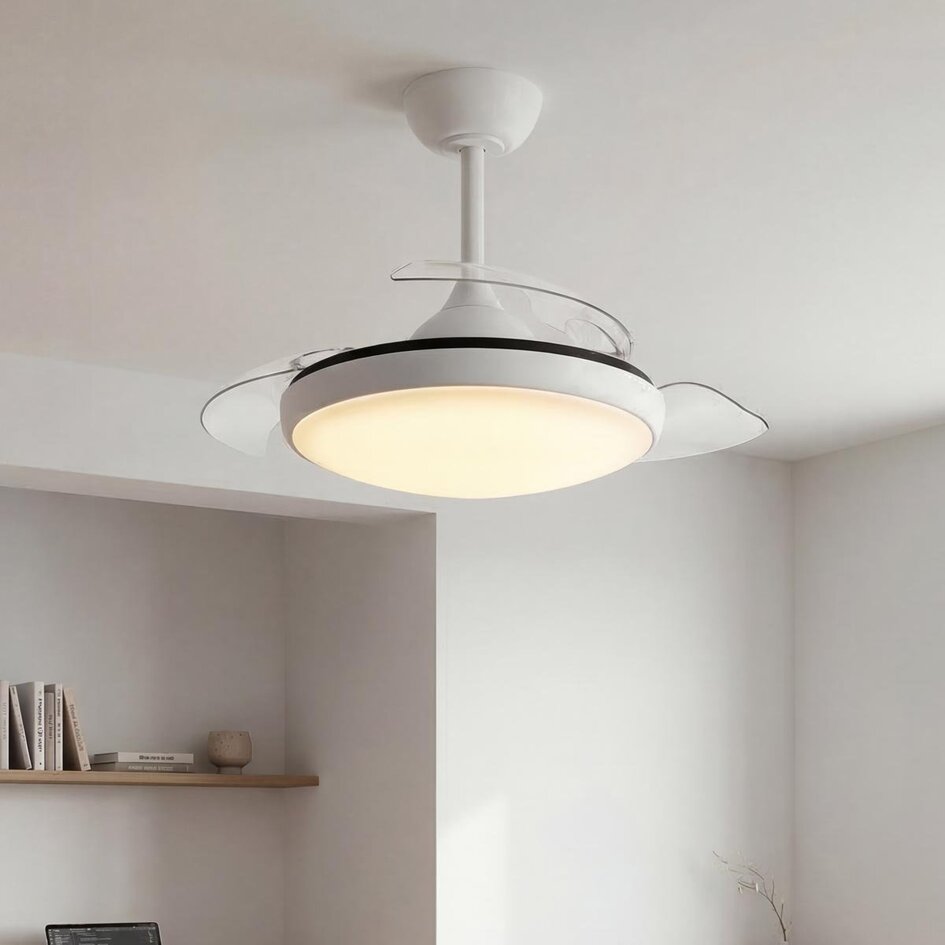 Denne hvid loftventilator med integreret LED-belysning er en passende tilføjelse til ethvert moderne interiør. Takket være sommer- og vinterfunktionen og de integrerede LED'er er Haizea et fantastisk 2-i-1-produkt, og med sit slanke og minimalistiske design passer den nemt ind i ethvert rum, fra stuer til soveværelser og endda kontorer.