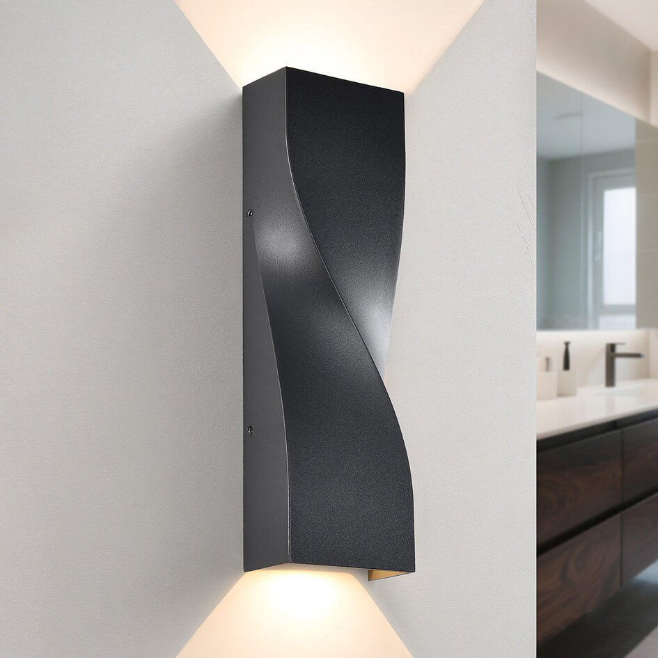 Er du på udkig efter en væglampe, der kombinerer et strømlinet design med praktisk belysning? Så er Aurelia det rette valg. Det unikke, drejede design giver et legesygt og arkitektonisk accent til badeværelsets væg. Lyset stråler både opad og nedad, hvilket skaber en stemningsfuld og jævn belysning. Takket være IP65-klassificeringen er denne lampe perfekt egnet til brug i fugtige rum som badeværelset.