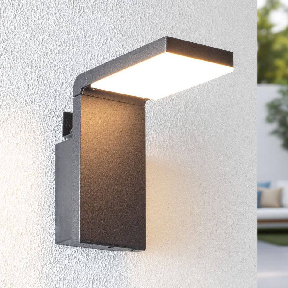 Leder du efter en stilren væglampe, som kan lyse op ved hoveddøren eller skuret på en bæredygtig måde? Så tag et kig på solcellevæglampen Pascal. Væglampen kommer i et slankt, sort design og har en kompakt størrelse. Den integrerede LED-pære udsender et varmt, hvidt lys gennem det transparente panel på undersiden af lampehovedet. Lyskilden er genopladelig via solenergi og kan justeres i styrken fra 130 til 50 eller 15 lumen. Med en solcellelampe behøver du ikke at bekymre dig om at trække strøm til lampen. Den passer fuldstændig sig selv!