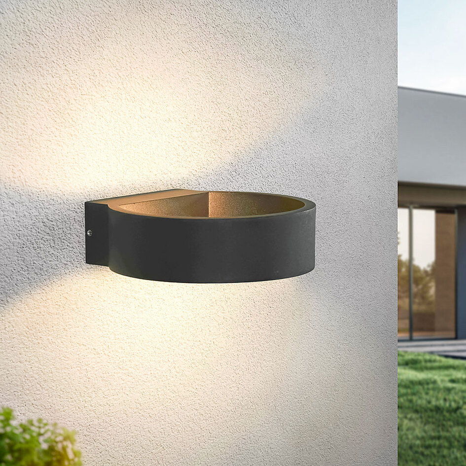 Den udendørs væglampe Misty er en enestående lampe, der er ideel til at belyse facaden, et havehegn eller på andre udendørs overflader. Med sin elegante udformning og karakteristiske runde form tilfører væglampen et luksuriøst og moderne udtryk til din bolig eller have. Lampen udsender lyset i både en op- og nedadgående retning, hvilket skaber en fascinerende belysningseffekt. Lampen er fremstillet af robust og vejrbestandigt aluminium, og du er derfor garantereret en udelampe, du kan bruge i mange år, uden at den mister sit pæne udseende eller funktionalitet.